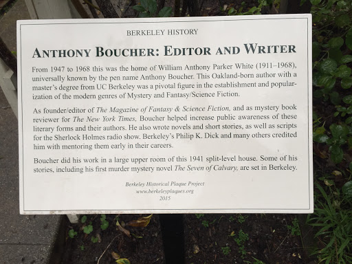 William Anthony Parker White, better known by his pen name Anthony Boucher, was an American author, critic, and editor who wrote several classic mystery novels, short stories, science fiction, and radio dramas. Between 1942 and 1947, he acted as reviewer of mostly mystery fiction for the San Francisco Chronicle. In addition to "Anthony Boucher", White also employed the pseudonym "H. H. Holmes", which was the pseudonym of a late-19th-century American serial killer; Boucher would also write light verse and sign it "