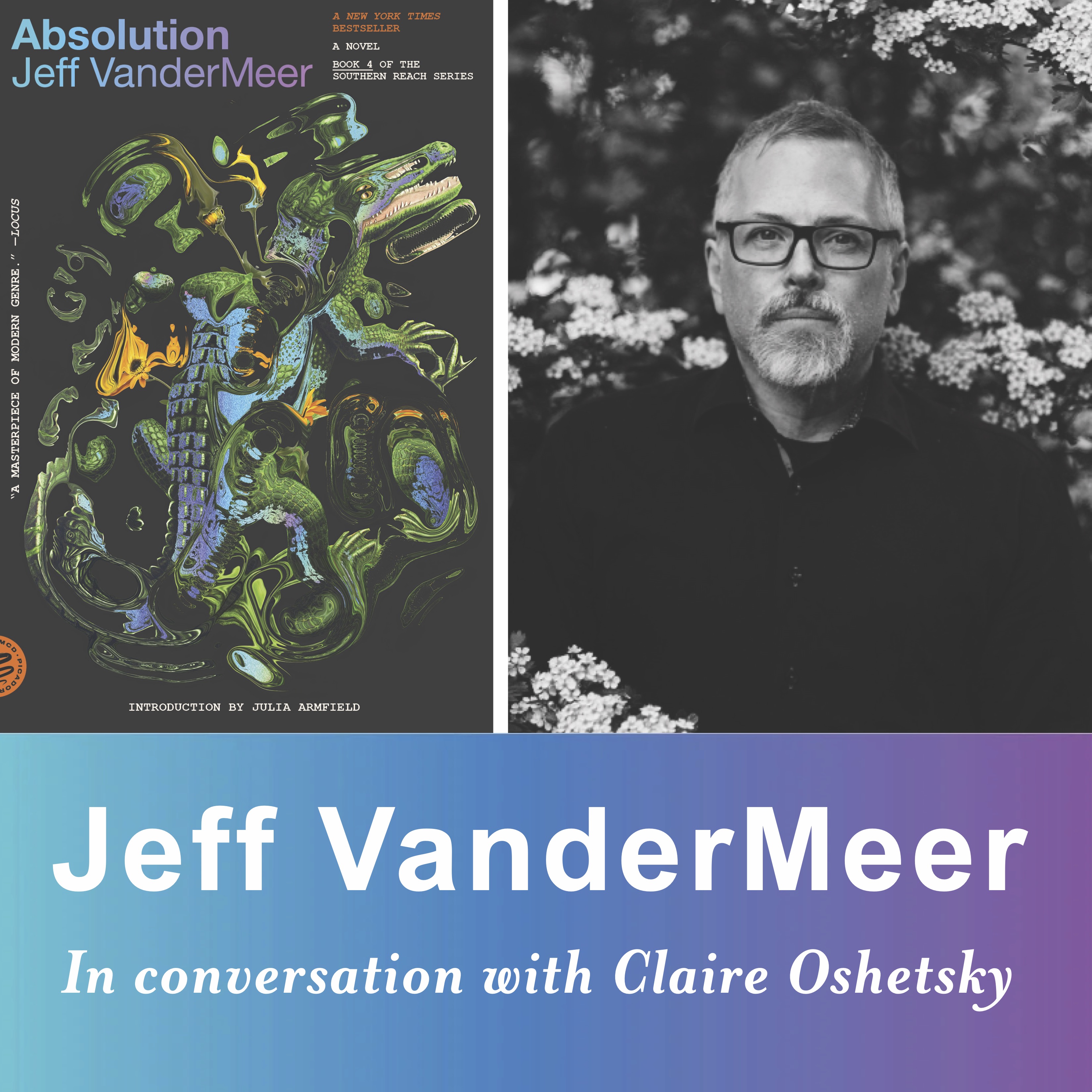 NYT bestselling writer Jeff VanderMeer has been called “the weird Thoreau” by the New Yorker for his engagement with ecological issues. His most recent novel, the national bestseller Borne, received wide-spread critical acclaim and his prior novels include the Southern Reach trilogy (Annihilation, Authority, and Acceptance). Annihilation won the Nebula and Shirley Jackson Awards, has been translated into 35 languages, and was made into a film from Paramount Pictures directed by Alex Garland. His nonfiction has appeared in New York Times, the Los Angeles Times, the Atlantic, Slate, Salon, and the Washington Post. He has coedited several iconic anthologies with his wife, the Hugo Award winning editor. Other titles include Wonderbook, the world’s first fully illustrated creative writing guide. VanderMeer served as the 2016-2017 Trias Writer in Residence at Hobart and William Smith Colleges. He has spoken at the Guggenheim, the Library of Congress, and the Arthur C. Clarke Center for the Human Imagination.